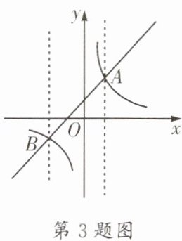 3. (金牛区一诊)如图,在平面直角坐标系xOy中,一次函数$y_{1}= kx+b的图象与反比例函数y_{2}= \frac {6}{x}$的图象交于点A,B,点A的横坐标为2,当$x<-3$时,总有$y_{2}>y_{1}$恒成立,则k的取值范围是____