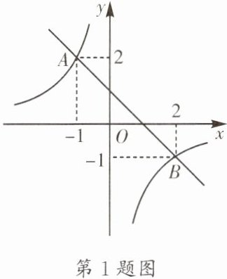 1. (金牛区期末)如图,一次函数$y= kx+b(k≠0)的图象与反比例函数y= \frac {m}{x}(m≠0)的图象交于点A(-1,2)$,$B(2,-1)$,则不等式$kx+b<\frac {m}{x}$的解集是(