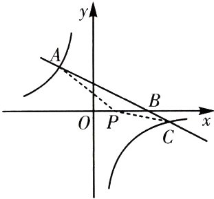 (2)联立方程组$\left\{\begin{array}{l} y=-\frac {1}{2}x+3,\\ y=-\frac {8}{x},\end{array}\right. $解得$\left\{\begin{array}{l} x=8,\\ y=-1\end{array}\right. $或$\left\{\begin{array}{l} x=-2,\\ y=4,\end{array}\right. $$\therefore$点 C 的坐标为$(8,-1)$.如图,连接 AP,PC.$\because S_{\triangle PAC}=S_{\triangle PAB}+S_{\triangle PBC}=\frac {1}{2}×PB×4+\frac {1}{2}×PB×1=10$,解得$PB=4$.又$\because B(6,0)$,$\therefore$点 P 的坐标为$(2,0)$或$(10,0)$.