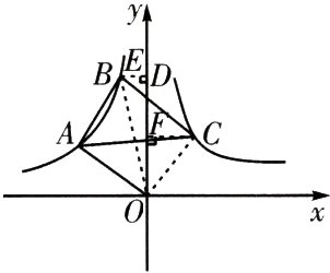 ∴点 C 的坐标为$(\frac {k}{2m},2m)$.连接 OB,$\because \triangle ABC$的面积为 24,$\therefore \triangle BCO$的面积为 12. 过点 C 作 x 轴的垂线,垂足为 P,由$S_{\triangle COP}+S_{梯形CBFP}=S_{\triangle BCO}+S_{\triangle BOF}$,且$S_{\triangle COP}=S_{\triangle BOF}$,得$S_{梯形CBFP}=S_{\triangle BCO}=12,\therefore \frac {(m+2m)(\frac {k}{m}-\frac {k}{2m})}{2}=12$,解得$k=16$.