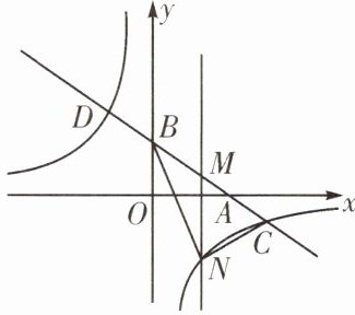 (2)点 M 在线段 AB 上(不与端点 A,B 重合),若$CM= CN$,求$\triangle BCN$的面积.