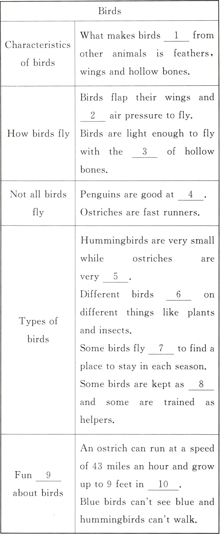 阅读并根据下面的短文,在表格中的空格里填入一个最恰当的单词。