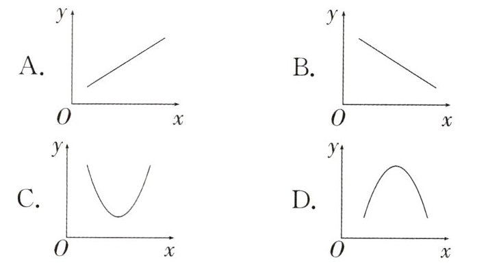 8. 跨学科 数学 Which might be the relationship between the global crop production (y) and the time (x)?