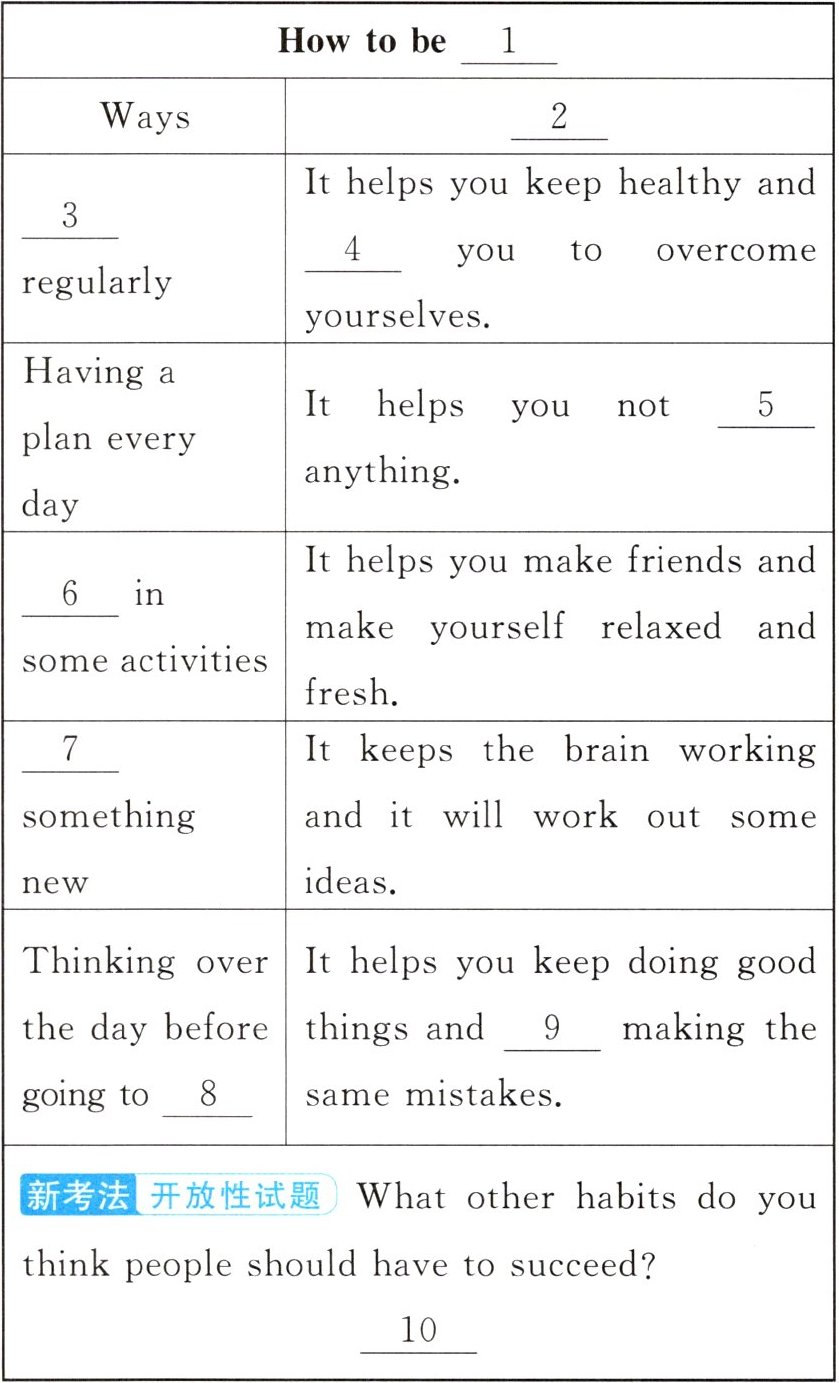 | 新考法开放性试题 What other habits do you think people should have to succeed? 10 |