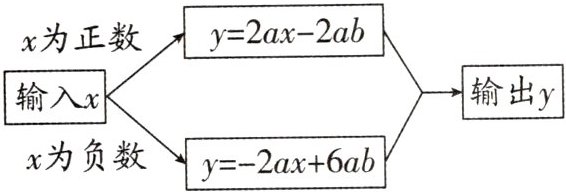 B 解析:$\because a > b > 0$,$\therefore 3a + 2b > 0$,$-3a - 2b < 0$,$2b - 3a < 0$,$\therefore$甲输出的结果为$y = 2a(3a + 2b)-2ab = 6a^{2}+2ab$;乙输出的结果为$y = -2a(-3a - 2b)+6ab = 6a^{2}+10ab$;丙输出的结果为$y = -2a(2b - 3a)+6ab = 6a^{2}+2ab$,输出结果相同的是甲和丙,故选B。
