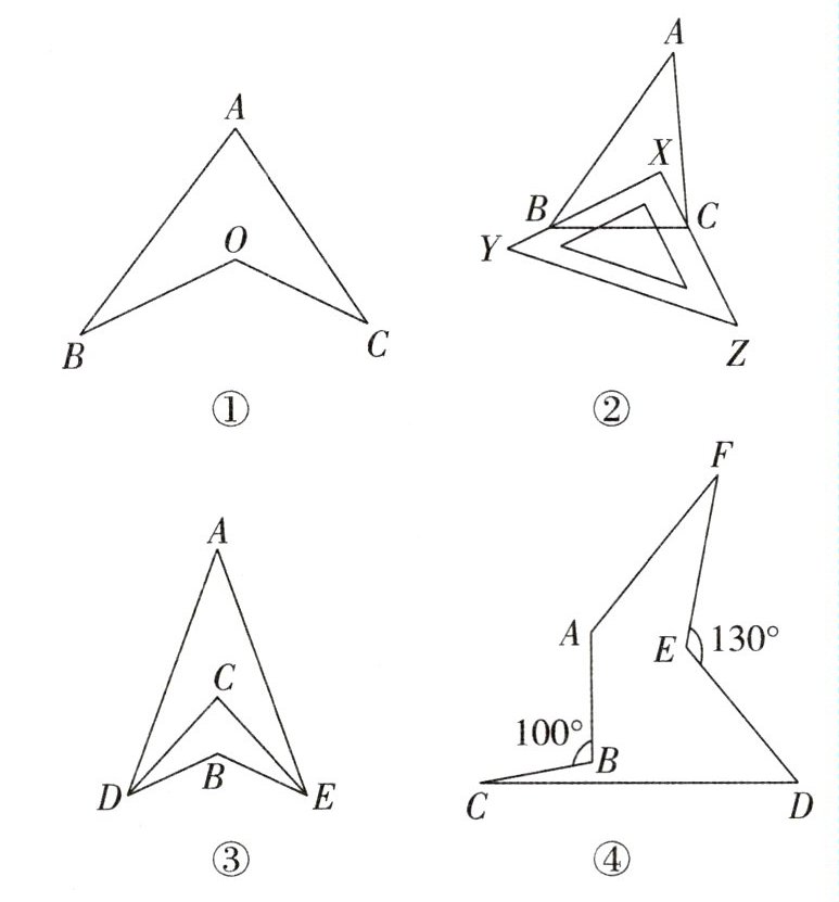 (1)观察图①,说明∠BOC与∠A,∠B,∠C之间的数量关系.