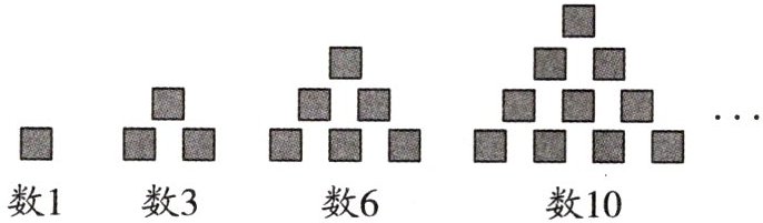 传说古希腊毕达哥拉斯(约公元前580年~约前500(490)年)学派的数学家经常在沙滩上研究数学问题.他们在沙滩上画点或用小石子来表示数,比如,他们研究过1,3,6,10,…,由于这些数可以用图中所示的三角形点阵表示,他们就将其称为三角形数,第$n$个三角形数可以用$\frac { n ( n + 1 ) } { 2 } ( n \geq 1 )$表示.