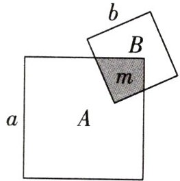 10.(10分)(2025·河北模拟)如图,大正方形$ A $的边长为$ a $,小正方形$ B $的边长为$ b $,两个正方形重叠部分(阴影部分)的面积为$ m $.