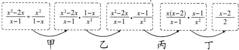 3. (河北中考)老师设计了接力游戏,用合作的方式完成分式化简,规则是:每人只能看到前一人给的式子,并进行一步计算,再将结果传递给下一人,最后完成化简.过程如图所示: