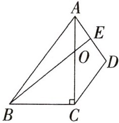 14.(2025·孝感期末)如图,在四边形ABCD中,AC⊥BC,AB//DC,AD = CD,E为AD的中点,连接BE交AC于点O,记△BOC的面积为$S _ { 1 } ,$△AOE的面积为$S _ { 2 } ,$若AC = 4,BC = 3,则$S _ { 1 } - S _ { 2 } =$_______.