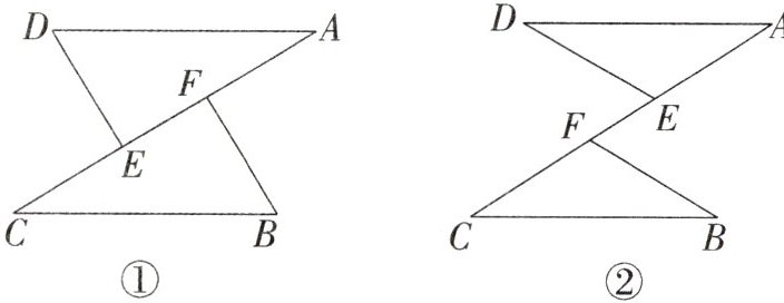 (2)若点E,F运动至如图②所示的位置,仍有$AF=CE$,则$△ADE\cong △CBF$还成立吗? 为什么?