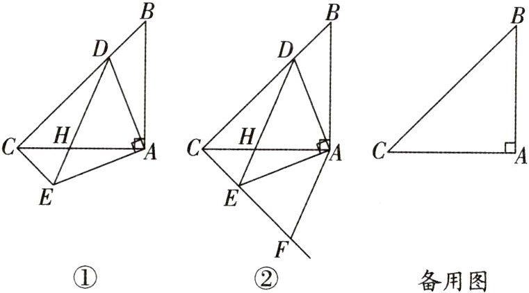 13. (2024·沈阳期中)在等腰直角三角形ABC中,$AB=AC$,$∠BAC=90^{\circ }$,$∠ABC=∠ACB=45^{\circ }$,点D是线段BC上一点,点D不与点B、点C重合,连接AD,以AD为一边作$\triangle ADE$,$AD=AE$,$∠DAE=90^{\circ }$,且点E与点D在直线AC两侧,DE与AC交于点H,连接CE.