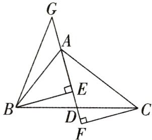 12. (2024·苏州月考)如图,AD是$\triangle ABC$的中线,$BE⊥AD$,垂足为E,$CF⊥AD$,交AD的延长线于点F,G是DA的延长线上一点,连接BG.