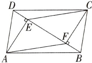 ∵ $ BE = DF $,∴ $ BE - EF = DF - EF $,即 $ BF = DE $。∵ $ AE \perp BD $,$ CF \perp BD $,∴ $ \angle AED = \angle CFB = 90^\circ $。在 $ Rt\triangle ADE $ 与 $ Rt\triangle CBF $ 中,$ \left\{ \begin{array} { l } { AD = CB, } \\ { DE = BF, } \end{array} \right. $ ∴ $ Rt\triangle ADE \cong Rt\triangle CBF ( HL ) $。
