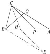 ∴ 当 $ C $,$ E $,$ H $ 三点共线时,$ BQ + CP $ 有最小值。