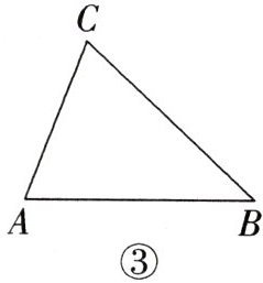 (3)在$△ABC$和$△DEF$中,$AC=DF,BC=EF,$$∠B=∠E$,且$∠B,∠E$都是锐角,请你用尺规在图③中作出$△DEF$,使$△DEF$和$△ABC$不全等.(不写作法,保留作图痕迹)
