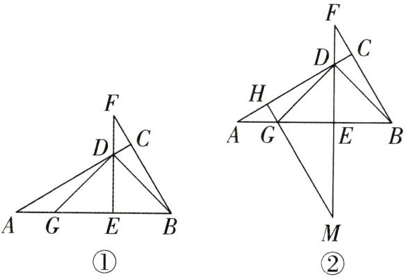 (2)过点G作$GH⊥AD$,垂足为H,与DE的延长线交于点M,如图②,找出图中与AB相等的线段,并证明.