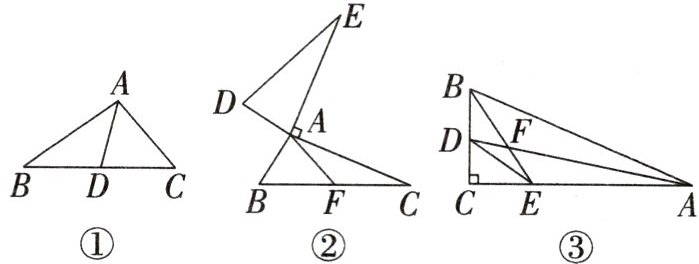 (3)如图③,在$Rt△ABC$中,$∠C=90^{\circ },∠BAC$和$∠ABC$的平分线AD与BE相交于点F,连接DE,$S_{△ABC}=30,S_{△CDE}=4$,则$S_{△ABF}=$____.