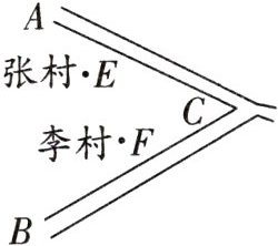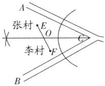 5. (2024·武威期末)如图所示,为促进全民健身运动,某镇计划在张村与李村之间建一个娱乐健身场所.张村、李村坐落在两相交公路内,健身场所到两条公路的距离相等,并且到两村的距离和最短,请你通过作图确定健身场所的位置.