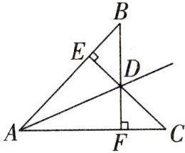 ∵BF⊥AC,CE⊥AB,∴∠DEB=∠DFC=90°。又∵∠EDB=∠FDC,BD=CD,∴△BDE≌△CDF(AAS),∴DE=DF。又∵DE⊥AB,DF⊥AC,∴点D在∠BAC的平分线上。