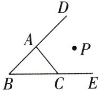 4. 教材P51练习T2变式 如图,已知点$P$到$BE$,$BD$,$AC$的距离恰好相等,则点$P$的位置:①在$\angle B$的平分线上;②在$\angle DAC$的平分线上;③在$\angle ECA$的平分线上;④恰是$\angle B,\angle DAC,\angle ECA$三个角的平分线的交点.正确结论有______