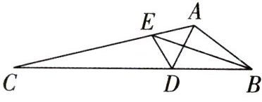 14. 如图,在$\triangle ABD$中,$\angle BAD=80^{\circ}$,$C$为$BD$延长线上一点,$\angle BAC=130^{\circ}$,$\triangle ABD$的角平分线$BE$与$AC$交于点$E$,连接$DE$,求$\angle DEB$的度数.