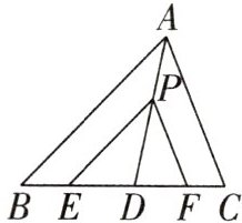12. 教材P53习题T5变式 如图,在$\triangle ABC$中,点$D,E,F$在边$BC$上,点$P$在线段$AD$上,若$PE// AB,\angle PFD=\angle C$,点$D$到$AB$和$AC$的距离相等,求证:点$D$到$PE$和$PF$的距离相等.