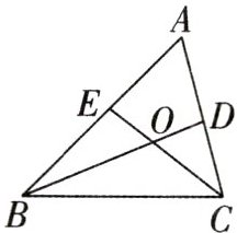 $BE + CD = BC$。理由如下:如图,在$BC$上截取$BF = BE$,连接$OF$,$AO$,$\because BD$平分$\angle ABC$,$\therefore \angle OBE = \angle OBF$。又$\because OB = OB$,$\therefore \triangle BEO\cong \triangle BFO(SAS)$,$\therefore \angle 1 = \angle 2$。$\because \angle BAC = 60^{\circ}$,$\therefore \angle BOC = 180^{\circ}-\frac{1}{2}\times(\angle ABC + \angle ACB)=180^{\circ}-\frac{1}{2}\times(180^{\circ}-60^{\circ}) = 120^{\circ}$,$\therefore \angle DOE = 120^{\circ}$,$\therefore \angle BAC + \angle DOE = 180^{\circ}$。$\because \angle AEO + \angle AOE + \angle EAO + \angle DAO + \angle DOA + \angle ADO = 180^{\circ}+180^{\circ}=360^{\circ}$,$\therefore \angle AEO + \angle ADO = 180^{\circ}$,$\therefore \angle 1 + \angle 4 = 180^{\circ}$。$\because \angle 2 + \angle 3 = 180^{\circ}$,且$\angle 1 = \angle 2$,$\therefore \angle 3 = \angle 4$。又$\because \angle DCO = \angle FCO$,$CO = CO$,$\therefore \triangle CDO\cong \triangle CFO(AAS)$,$\therefore CD = CF$,$\therefore BC = BF + CF = BE + CD$。