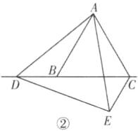 (2)观察图②,当$\triangle ABD$和$\triangle AEC$分别绕点A旋转时,BE,CD之间的大小关系是否会改变?