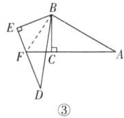 ∴△EPF是等腰直角三角形。则$S_{四边形AEPF}=\frac{1}{2}S_{△ABC}$,故①②③均正确。