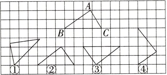 7. (呼和浩特中考改编)图中序号①②③④对应的四个三角形,都是$ \triangle ABC $这个图形进行了一次变换之后得到的,其中是通过轴对称得到的是