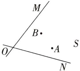 作法:连接AB,作线段AB的垂直平分线交$\angle MON$的平分线于点P,点P即为所求.依据:角平分线上的点到角的两边距离相等,线段的垂直平分线上的点到线段两端的距离相等.