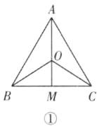 (1)5或11 解析:如图①,当点O在$\triangle ABC$内时, $\because AB=AC$, $OB=OC$, $\therefore AM$为BC的垂直平分线, $\therefore AM\perp BC$, $\therefore AO=AM−OM=5$; 如图②,当点O在$\triangle ABC$外时, $AO=AM+OM=11$.