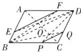 (2) 如图所示,连接 $ BF $,$ DE $,$ BQ $,由