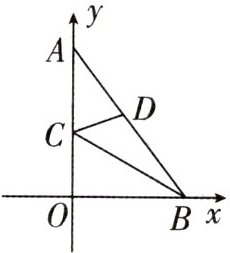 13. 如图,在平面直角坐标系中,点$A$的坐标为$(0,4)$,点$B$的坐标为$(3,0)$,$AB=5$,点$C,D$分别在$y$轴、$AB$上运动,连接$BC,CD$,则$BC+CD$的最小值是多少?