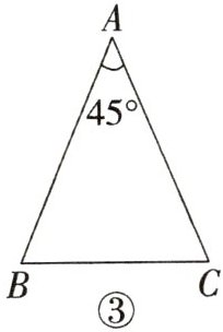 (2)请在图③中,画出顶角为 $ 45^{\circ} $ 的等腰三角形 ABC 的“三等腰线”,并标出每个等腰三角形顶角的度数(画出一种即可).