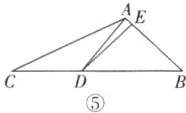 ②当$AD = DE$时,如图⑤,$\because AD = CD$,$\therefore \angle CAD = \angle C = 25.5^{\circ}$,$\because DE = EB$,$\therefore \angle EDB = \angle B = x^{\circ}$,$\therefore \angle DAE = \angle AED = 2x^{\circ}$,$\therefore 25.5 + 25.5 + 2x + x = 180$,$\therefore x = 43$,$\therefore \angle B = 43^{\circ}$。