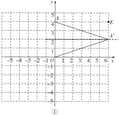 (3)$\because \triangle OAA'$是以$OA$为底的等腰三角形,$\therefore A'$在$OA$的垂直平分线上,$\therefore y_{A'} = 2$。设点$A$关于$l_1$的对称点为$E$,则$A'$与$E$关于$l_2$对称,如图①,$\therefore E(2h, 4)$,$A'(2h, 2)$,$\therefore h = \frac{2 + 4}{2} = 3$,$\therefore A'(6, 2)$,$\therefore S_{\triangle OAA'} = \frac{1}{2} \times 4 \times 6 = 12$,$\therefore \triangle OAA'$的面积为$12$。