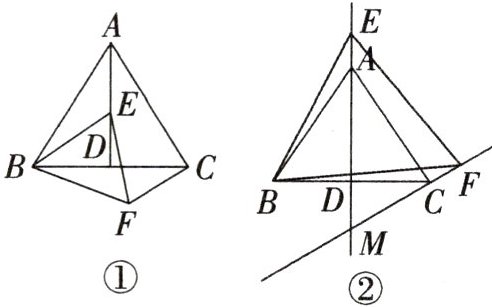 (2)如图②,若点E在AD的反向延长线上,且直线AE,CF交于点M.