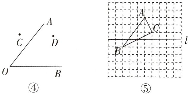 (5)如图⑤,利用网状格直接画出$\triangle ABC$关于直线$l$的轴对称图形$\triangle A'B'C'$.