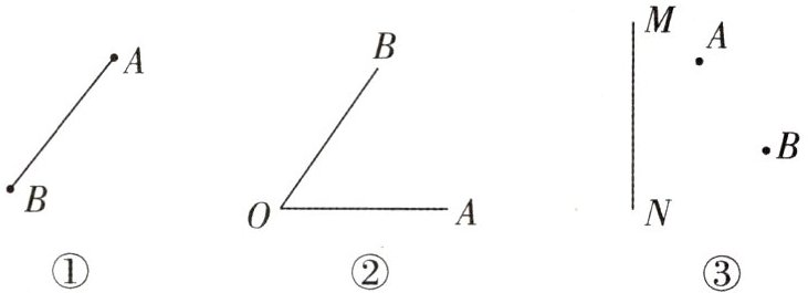 (3)如图③,要在公路$MN$上修一个车站$P$,使得$P$到$A$,$B$两个地方的距离和最小,请用直尺和圆规画出$P$的位置;