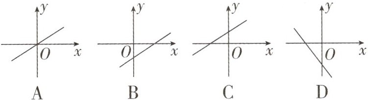 7. (枣庄中考)若关于x的一元二次方程$x^{2}-2x+kb+1= 0$有两个不相等的实数根,则一次函数$y= kx+b$的图象可能是 (