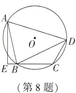 8. 如图,四边形ABCD内接于⊙O,AE⊥CB交CB的延长线于点E,若BA平分∠DBE,AD= 5,CE= $\sqrt{13}$,则AE= (