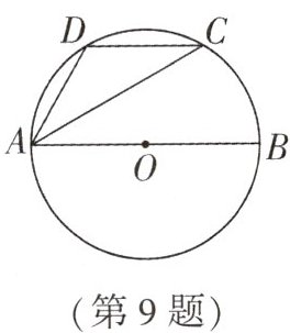 9. (泰安中考)如图,AB是$\odot O$的直径,$∠ACD = ∠CAB$,$AD = 2$,$AC = 4$,则$\odot O$的半径为(