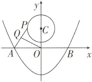 14. 如图,抛物线$y= \frac{1}{4}x^{2}-4$与x轴交于A,B两点,P是以点$C(0,3)$为圆心,2为半径的圆上的动点,Q是线段PA的中点,连接OQ,则线段OQ的最大值是____.