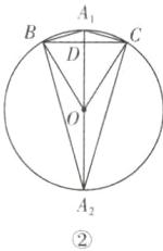 ∴$\triangle OBC$为等边三角形,$OB = OC = BC = 2$。设$OA_1\perp BC$于点D,