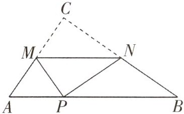 9. 改编题 如图,在$Rt\triangle ABC$中,$∠C= 90^{\circ },AC≠BC$,点M是边AC上的动点.过点M作$MN// AB$交BC于点N,现将$\triangle MNC$沿MN折叠,得到$\triangle MNP$.若点P在AB上,则以MN为直径的圆与直线AB的位置关系是 (