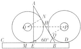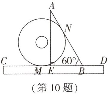 10. (贵阳中考)小明把半径为1的光盘、直尺和三角尺形状的纸片按如图所示放置于桌面上,此时,光盘与AB,CD分别相切于点N,M.现从如图所示的位置开始,将光盘在直尺边上沿着CD向右滚动到再次与AB相切时,光盘的圆心经过的距离是______.
