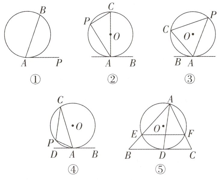 知识运用:如图⑤,AD是$△ABC中∠BAC$的平分线,经过点A的$\odot O$与BC相切于点D,与AB,AC分别相交于E,F.求证:$EF// BC$.