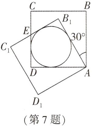 7.如图,将正方形ABCD绕点A按逆时针方向旋转$30^{\circ }$,得正方形$AB_{1}C_{1}D_{1},B_{1}C_{1}$交CD于点E,$AB= \sqrt {3}$,则四边形$AB_{1}ED$的内切圆半径为 (
